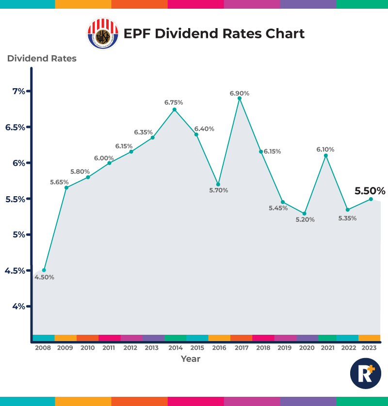 The Employees Provident Fund is a sovereign pension fund which provides retirement incentives for members through managing their savings. With a total of 16.07 million members (as of December 2023), the EPF invests members’ collective contributions in approved financial instruments for more favourable returns. By law, the EPF is required to provide a guaranteed dividend of at least 2.5% a year, but has consistently managed to deliver significantly higher rates since 1960. But how has the EPF dividend rates changed in the last decade?