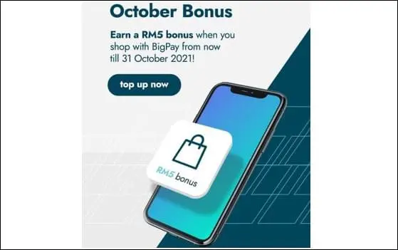 BigPay is currently running an exclusive campaign that will reward selected users with an RM5 bonus when they spend a specified minimum amount using BigPay. Already ongoing, this promo will continue until 31 October 2021.