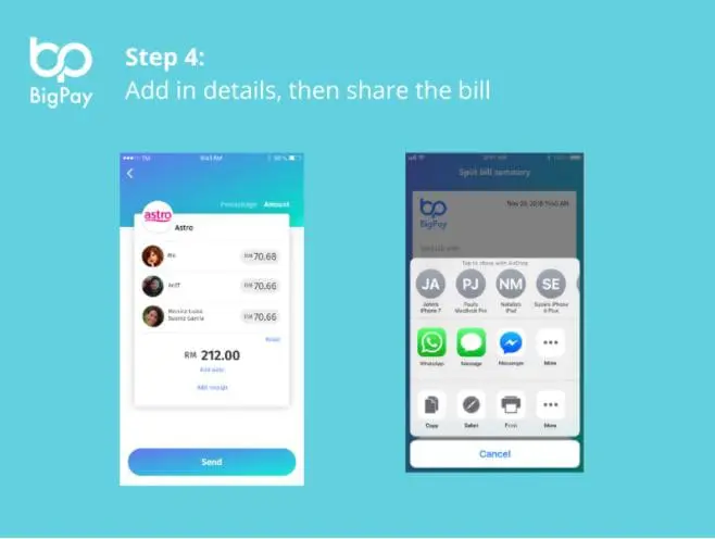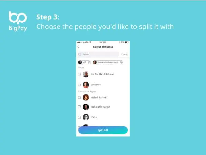 Meanwhile, those who share their monthly bill expenses with other people – such as individuals who are renting a house together – can tap into the split-bill function offered. Instead of going through the hassle of manually calculating the bills and sharing your bank details with your family and friends each month, you can easily pay and split the bill with them through the BigPay app.