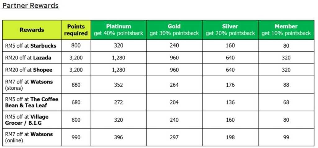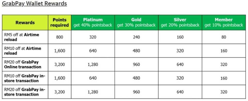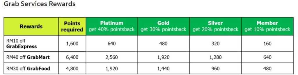 Under the GrabRewards Pointsback, the percentage of pointsback you receive depends on your membership tier. You can check out the rewards that are eligible for pointsback in the tables below: