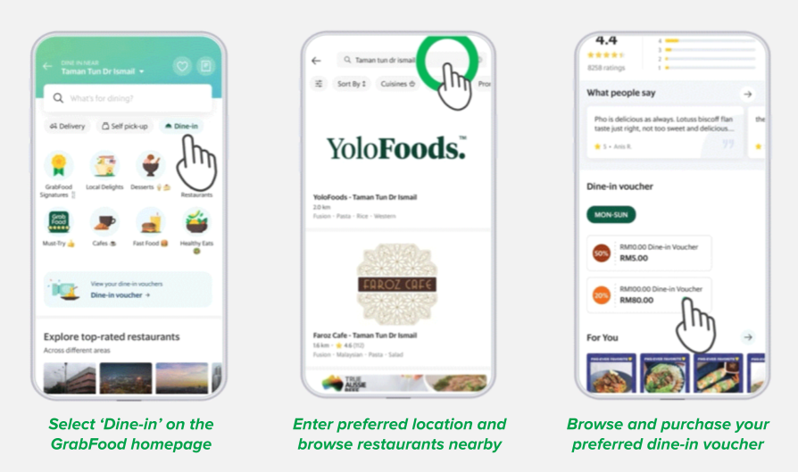 Grab has introduced a new GrabFood feature called Dine-In for its Malaysian users, which is aimed at helping them to explore and discover restaurants that they can visit in their vicinity or in a particular area. It also comes with the ability to purchase discount vouchers ahead of time so that you can enjoy savings when dining at your chosen restaurants.