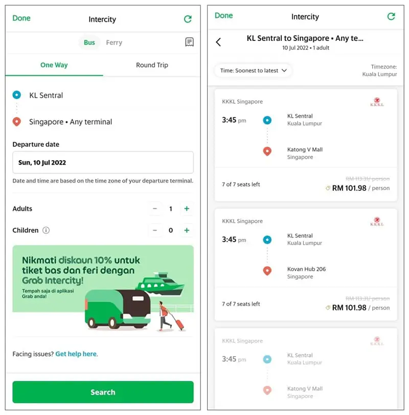In conjunction with the official launch of Intercity, Grab users will be able to enjoy a 10% discount on all tickets booked through the service. To note, Grab’s Intercity feature was actually rolled out much earlier – back in November 2021 in a pilot test. During this period, users were only able to purchase bus and ferry tickets for routes within Malaysia.
