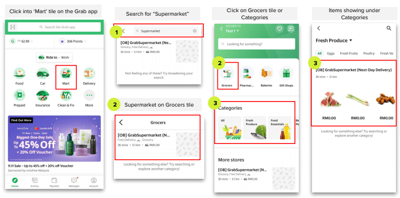 GrabSupermarket is currently being piloted in the areas of Section 12 and 13 in Petaling Jaya. If you are within this pilot area, you can simply click on the GrabMart tile to start shopping from GrabSupermarket.
