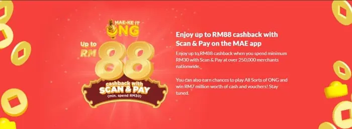 Maybank is currently running its Scan & Pay Chinese New Year 2021 Promotional Cashback campaign, which lets customers win up to RM88 cashback with a minimum spend of RM30 at more than 250,000 merchants nationwide. Ongoing until 2 March 2021, you will need to make your purchases using the Scan & Pay function on the Maybank2u or MAE by Maybank2u (MAE) app.