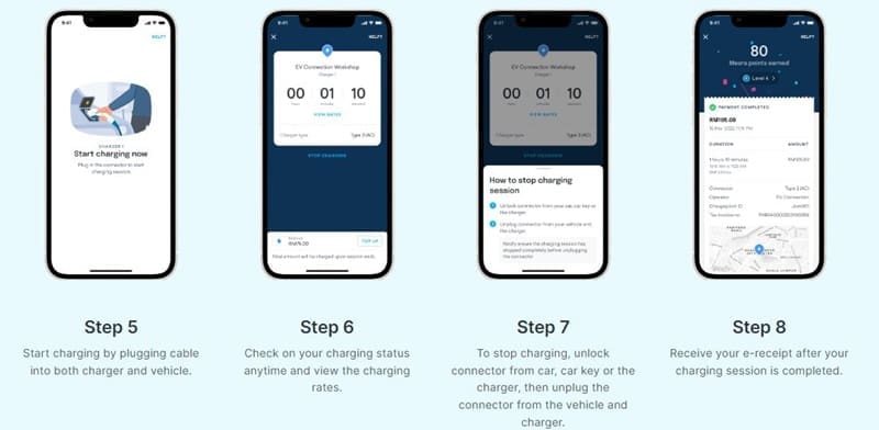 Once you’re at the station, go ahead and tap on “Start Charging” after parking your car next to the charger. You’ll then be prompted to select your charger from an available list; note that each location above will also have different types of connectors available, so be sure to check that your selected station has a charger that is compatible with your vehicle before making your way there.