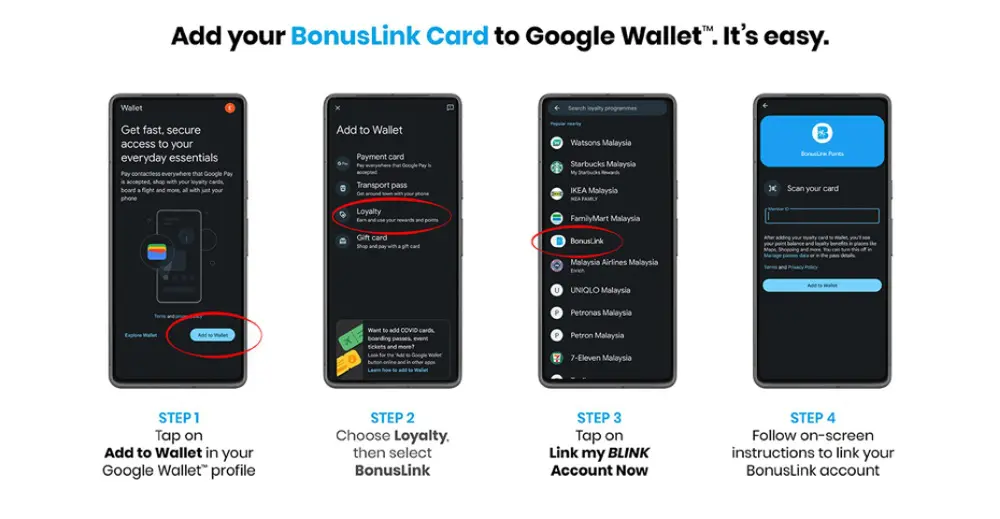 On its website, Bonuslink explained that existing members can add their cards by firing up their Google Wallet app, then tapping on “Add to Wallet” in their Google Wallet profile. Following that, tap on “Loyalty”, then select “Bonuslink” and “Link my BLINK Account Now” (or “Sign in to your account”, if you’re not yet signed in to your Bonuslink account). You’ll then be prompted with further on-screen instructions to complete the linking process.
