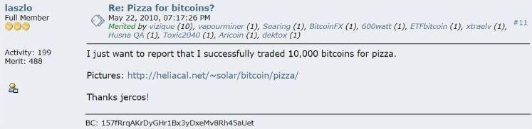 Selepas transaksi pertama “dunia sebenar” menggunakan token Bitcoin, Hanyecz – yang juga merupakan pembangun Bitcoin yang menyumbang kepada pertumbuhan mata wang kripto dengan kodnya – membuat beberapa lagi pembelian piza dengan Bitcoin. Malah, dia dikatakan telah membelanjakan sejumlah 100,000 Bitcoin untuk membeli piza. Dalam temubual bersama CoinTelegraph pada 2018, Hanyecz berkata bahawa dia tidak menyesal membelanjakan wang tersebut.