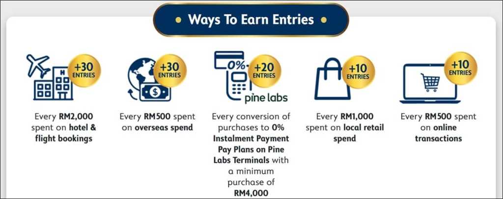 | Local retail transactions | Every RM1,000 spent on local retail spend | 10 entries |