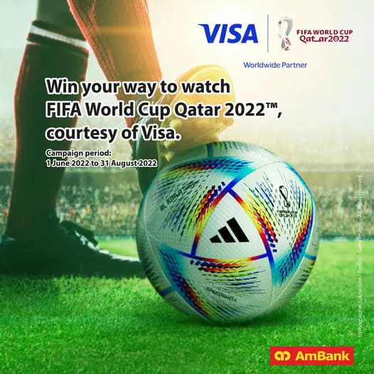 AmBank has partnered with Visa to hold its FIFA World Cup Kick2Win campaign, set to run between today until 31 August 2022. Through this promo, Visa credit cardholders will be able to win a grand prize – in the form of a trip to Qatar to watch the World Cup – as well as cashback prizes of between RM5 to RM1,000.