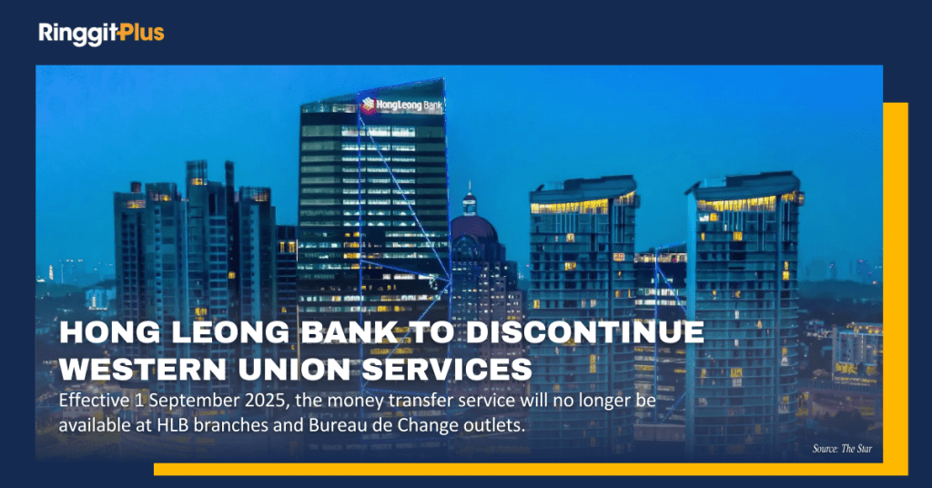 Hong Leong Bank (HLB) has confirmed that it will stop offering Western Union money transfer services from 1 September 2025. The change applies across all HLB branches and Bureau de Change outlets.