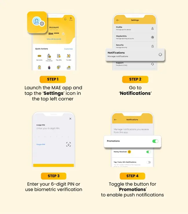 In its notice, Maybank also reminded customers to enable push notifications in their MAE app to receive these updates. If you’re unsure how to do that, here’s a step-by-step guide to help you out: