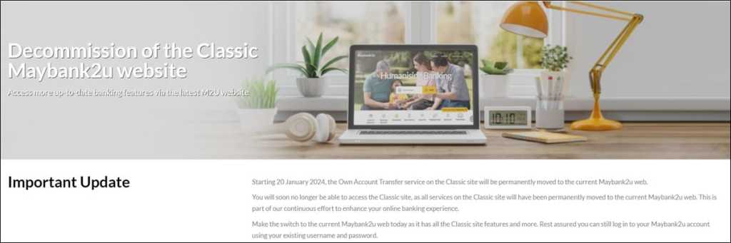 “Starting 20 January 2024, the Own Account Transfer service on the Classic site will be permanently moved to the current Maybank2u web. You will soon no longer be able to access the Classic site, as all services on the Classic site will have been permanently moved to the current Maybank2u web,” the bank shared in an update, adding that this is part of its continuous efforts to enhance customers’ online banking experience.