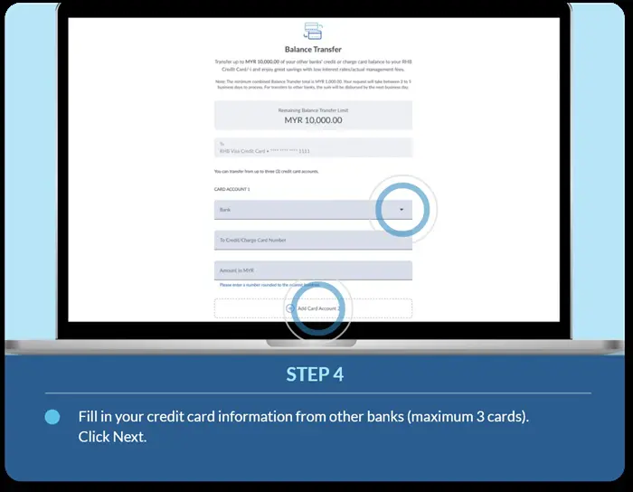 If you’d like to take advantage of these special rates under the campaign, you’ll need to make sure to apply for RHB’s Smart Move Balance Transfer plans via the new online banking method. To do so, log in to your RHB Online Banking account, and follow the visual guide below that was provided by RHB Bank: