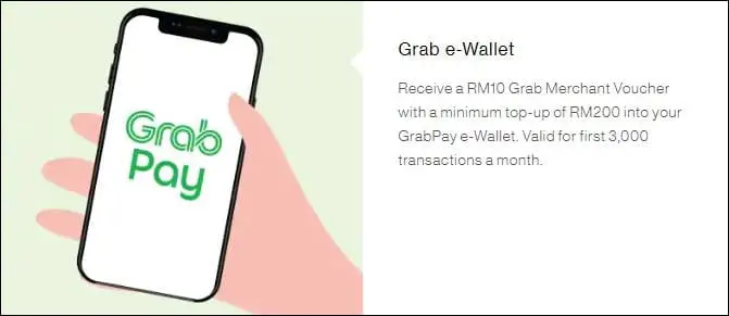 This deal allows cardholders who top up their GrabPay e-wallet with a minimum of RM200 to earn Grab merchant vouchers worth RM10. Open to both new and existing Grab users, each customer is entitled to one voucher per month.