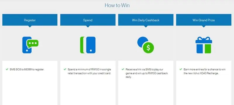 If you’d like to join Standard Chartered’s Year End Spend & Win campaign, you’ll need to register your participation by sending an SMS (“SC8“) to 66399 or by registering online via Standard Chartered’s website. Cardholders with multiple cards will only need to register once. Do also be aware that it may take up to three working days for the bank to update your registration, which means that you may experience some delay in receiving your game links (for the cashback rewards) during the start of your participation in the campaign.