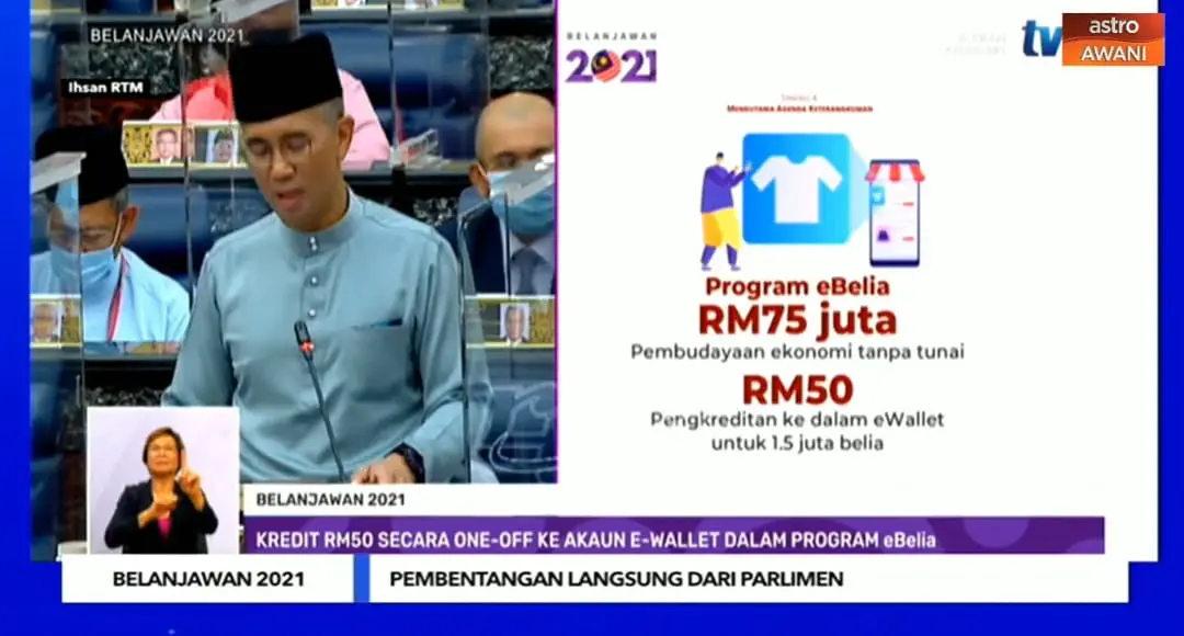 Youths between the age of 18 to 20 will receive a one-off RM50 digital incentive in the form of e-wallet credit, intended to encourage the use of cashless and contactless payments. The e-wallet credits will be provided via the eBelia programme.