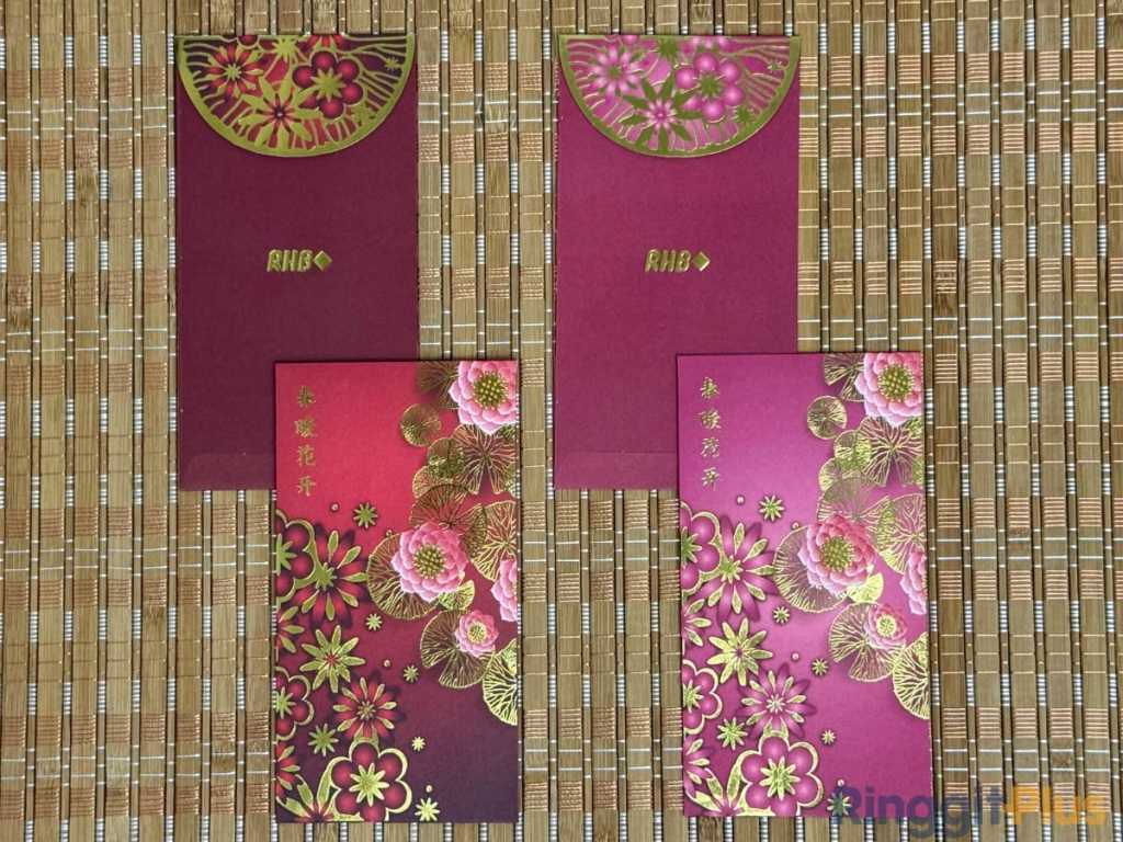 RHB Bank’s ang pow combines a rich red-to-pink gradient with gold floral patterns, offering a warm and festive charm. A simple yet appealing design for the New Year.