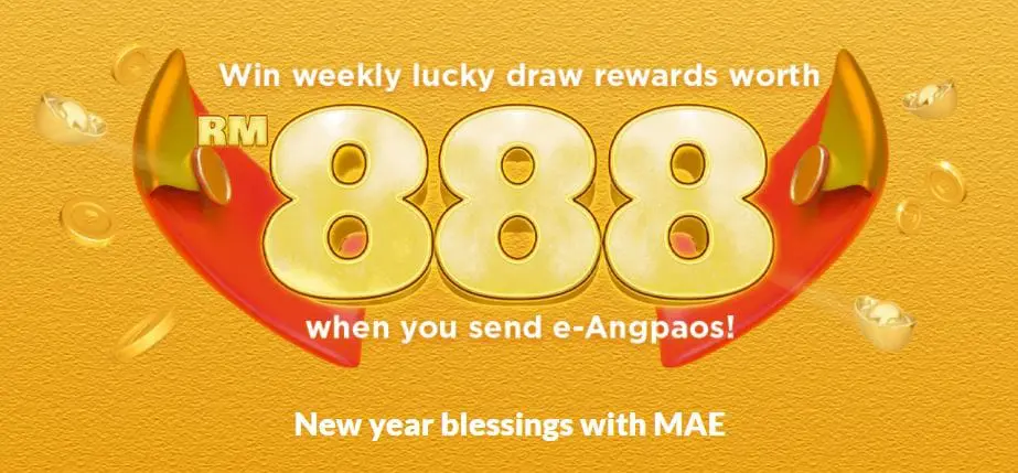 If you win, the prize will be credited into your MAE account within 30 working days from the draw date. You’ll also be notified via push notification on the MAE app. Each customer is only allowed to win one e-Angpao Lucky Draw prize during the entire campaign period.
