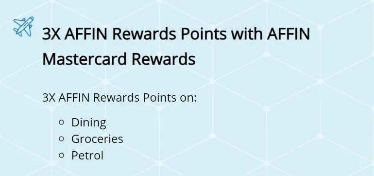 Cardholders will be glad to know that is no limit on the number of points that you can earn using the Affin Mastercard Rewards Card each month. As for points expiry, Affin Rewards Points expire after 3 years from the points issuance date – pretty standard for most rewards credit cards.