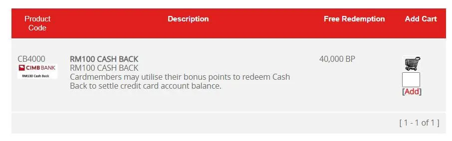RM100 cash back redemption on the CIMB Rewards catalogue