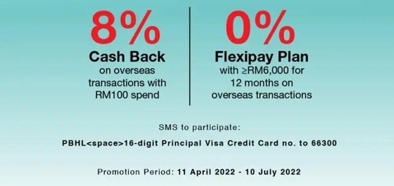 Public Bank and Public Islamic Bank are currently running its Overseas Reward With PB Visa Credit Card campaign, rewarding eligible credit cardmembers with 8% cashback for overseas transactions. Along with that, there is also a 0% Overseas Flexipay Plan offer, which allows cardmembers to convert their overseas transactions into a 12-month instalment plan with 0% interest.