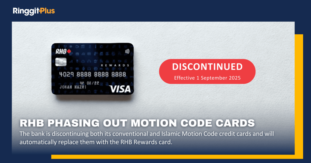 RHB has announced that the RHB Rewards Motion Code Credit Card/-i will be discontinued [PDF]. Starting 1 September 2025, no new Motion Code cards will be issued.