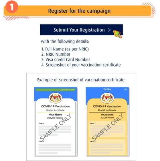 If you’d still like to join in on this campaign to try to win the 100% cashback prize, make sure to register your fully vaccinated status with Hong Leong Bank.
