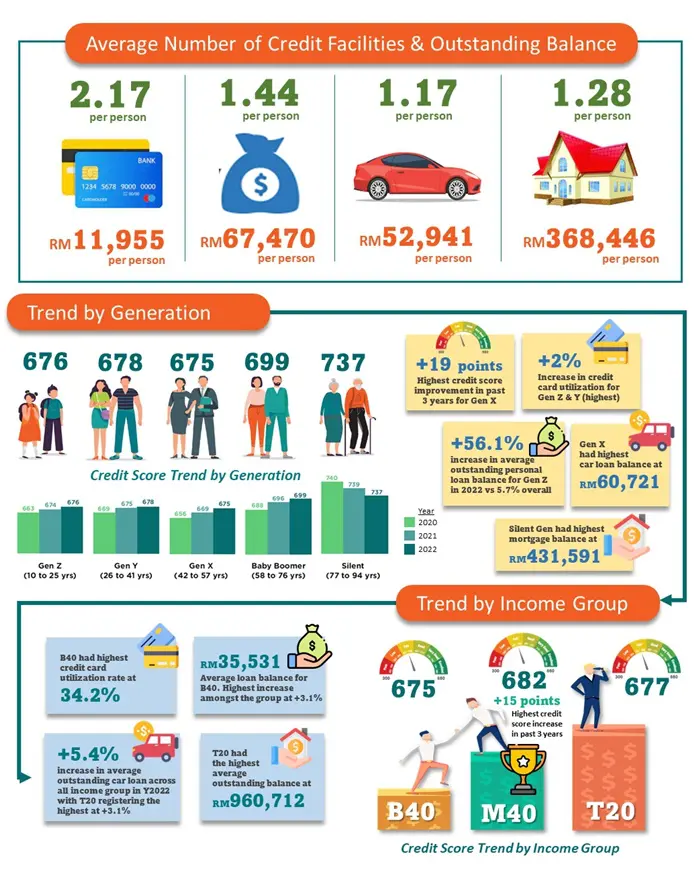 The CTOS State of Consumers Credit Report for Malaysia 2022 had a sample of over 1.4 million individual CTOS users, and also included other statistics such as comparisons of generational creditworthiness, average outstanding loan balances by income groups, and types of credit facilities.