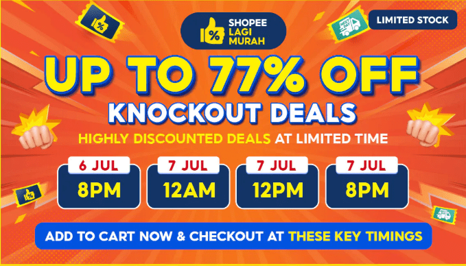 Also, don’t miss the 77% Off Knockout Deals, happening during 4 special sessions starting on 6 July 2025 at 8 PM. In each session, selected items will be available at 77% off but with limited stock available. Be sure to be on time and grab these deals before they’re gone!