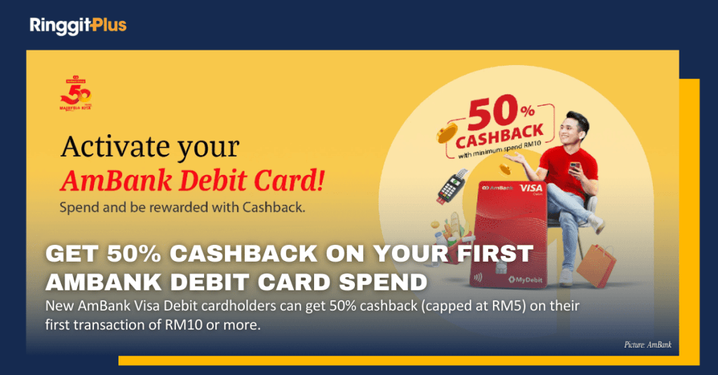 AmBank has introduced a cashback campaign for new Visa Debit cardholders. The promotion, called AmBank Visa Debit Card 50% Cashback upon 1st Spend, will run from 1 September 2025 until 31 December 2025.