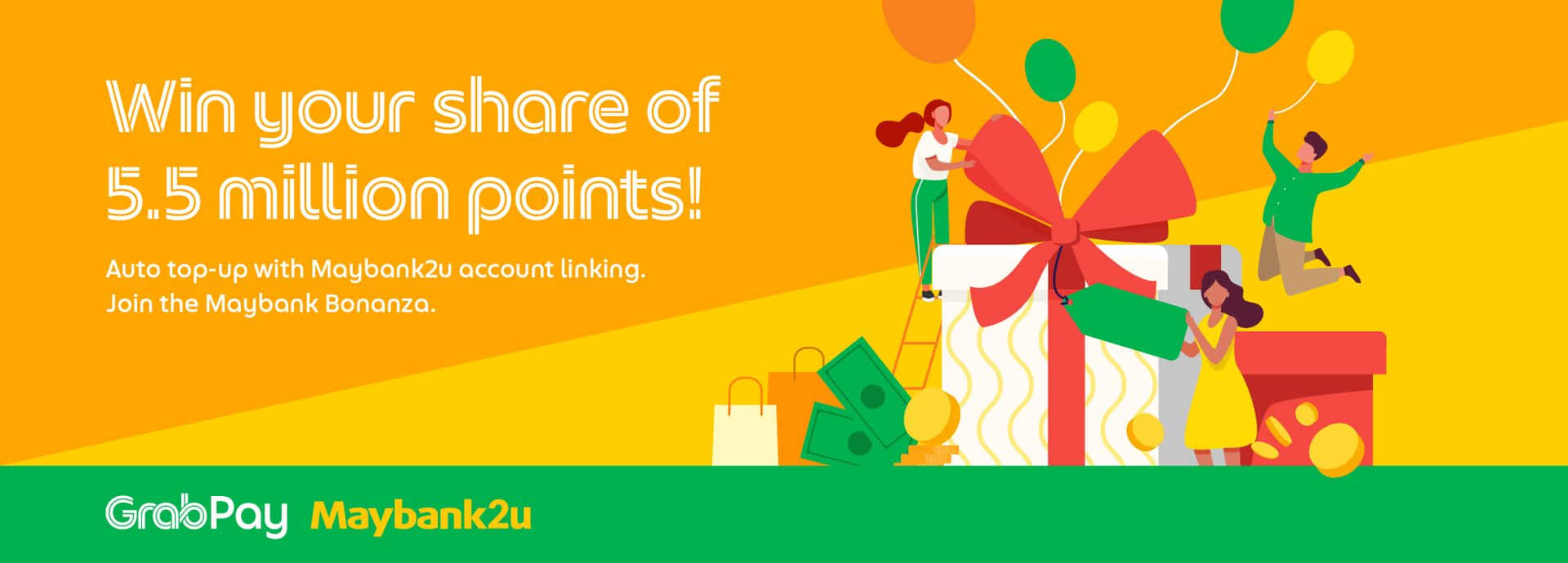 You can earn the bonus GrabRewards points by triggering an automatic top-up of minimum RM50 from your linked Maybank2U account to the GrabPay Wallet. The GrabRewards Points you stand to earn are detailed below: