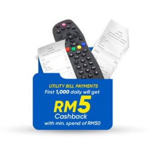 Get RM5 cashback when you spend a minimum of RM50 in one transaction using the TNG eWallet for the first time on postpaid bills. Limited to the first 1,000 eligible users daily throughout the promotion period.