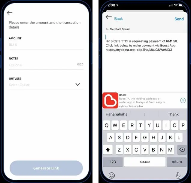 The Boost Payment Link is available for all Boost merchants via their Boost Business Account and can be found on the profile page. To share the payment link with customers, merchants just need to click “Share My Business Payment Link”, enter the amount that the customer is required to pay, and then select which email or messaging app to share the link. Lastly, customers only need to click on the received payment link to make payment via Boost.