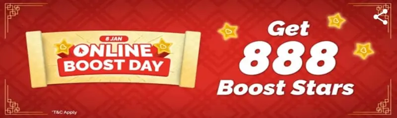 | 8 January – 15 February | Every transaction performed during this period will put you in the running to win 188,888 Boost Stars. There will be 88 lucky winners selected throughout the campaign. |