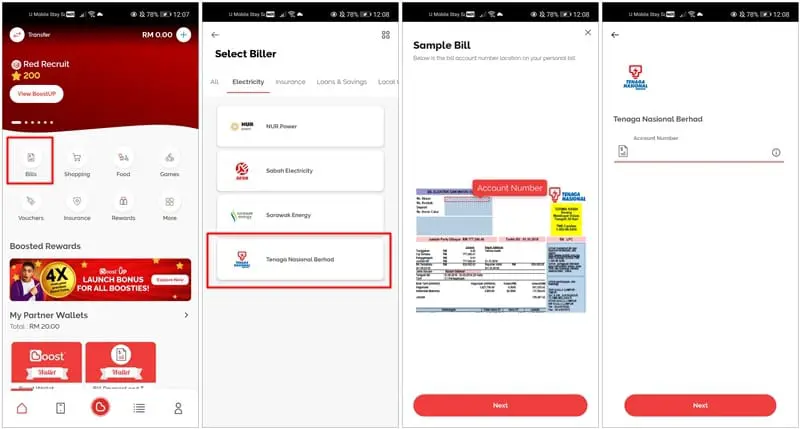 TNB was temporarily listed as a biller under BoostBills this morning under the “Electricity” tab. From there, you’ll be prompted to key in your TNB account number, and can then proceed to pay your electricity bills as you would your other obligations. In fact, we have even received comments from a few RinggitPlus readers who said that they managed to pay their TNB bills on Boost and were able to utilise the RM3 partner wallet bonus, before Boost took down TNB in its billers list.