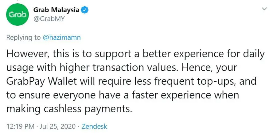 According to Grab on Twitter, the move is aimed at supporting a better experience for daily usage with higher transaction values as users will need to make top-ups less frequently, thus ensuring that everyone has a faster experience when making cashless payments.