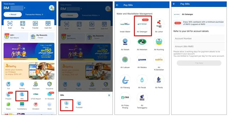 For those who are paying their Air Selangor bills on TNG eWallet for the first time, you can access the function by tapping on the Bills tile in the app. From there, select “Bills”, followed by “Air Selangor”. You can then key in all the required details to pay your water bill via TNG eWallet. Payment details will be reflected in your account within three working days.