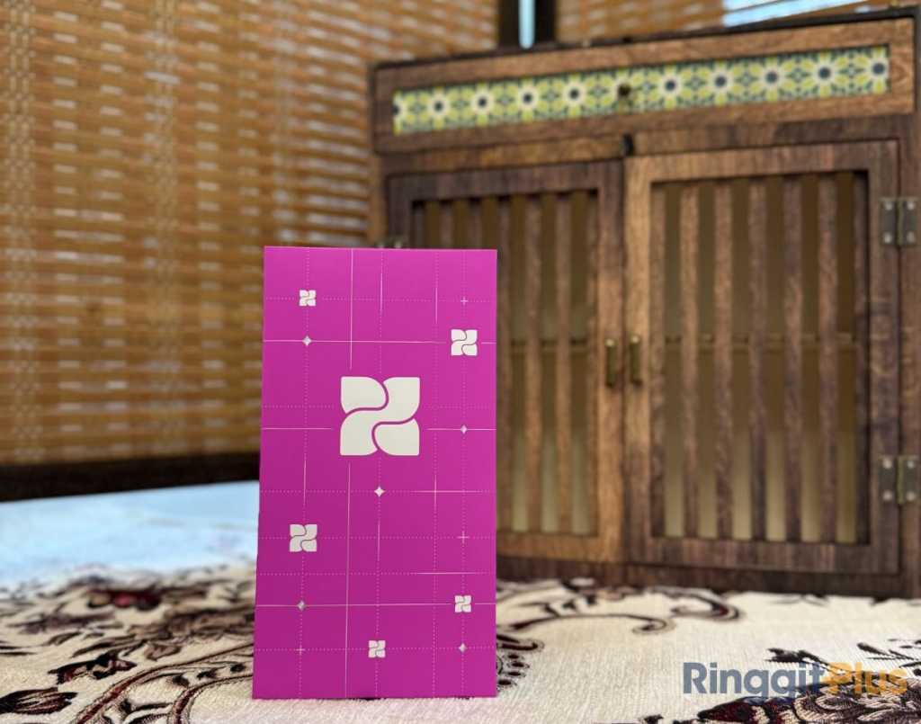 A bold magenta moment, but… does it scream Raya? Not quite. With its clean grid and centralised logo, this one feels more like a rebrand announcement than a festive packet. It’s sleek, yes but the lack of any ketupat, bulan, or even a cheeky salam leaves it feeling a little too corporate.