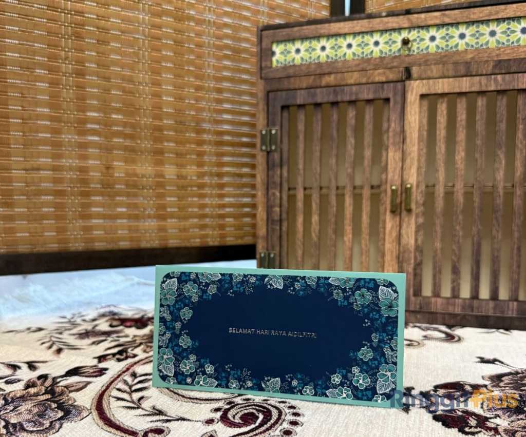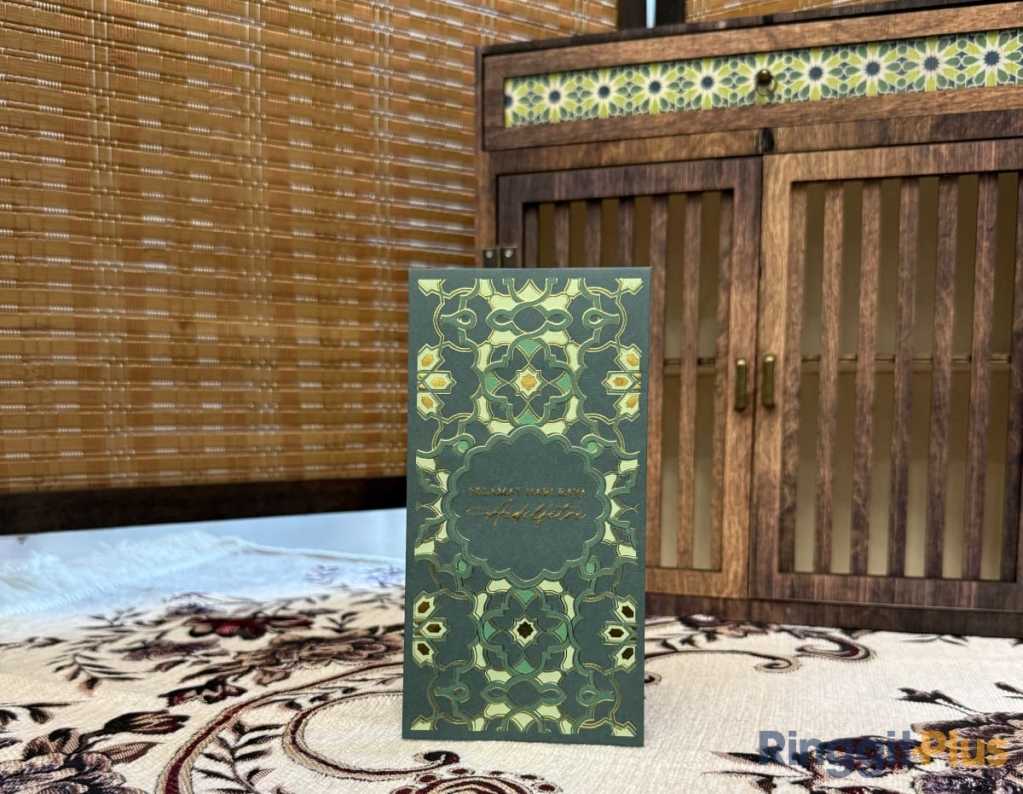 A clean and sleek gold-on-dark green design, but maybe too safe. The foil detailing does bring a premium feel, yet it lacks that signature Raya warmth or any cultural cues. Stylish? Yes. Festive? Not quite.