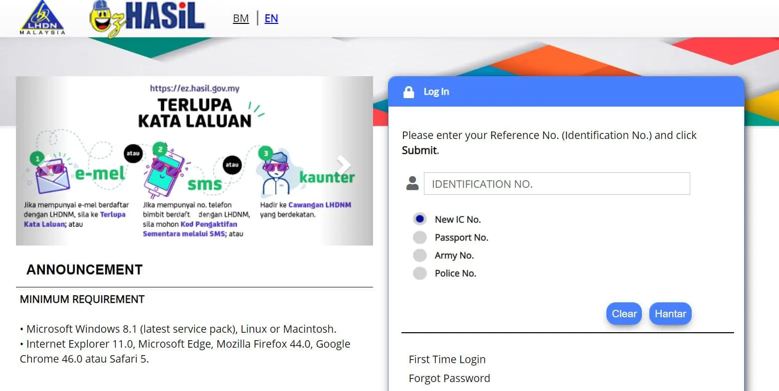 You can access e-Filing through ezHASiL or through LHDN’s new tax dashboard, MyTax. Once you have logged into e-Filing for the first time and set up your account as per the steps above, you can start filling up your Income Tax Return Form (ITRF) online. Remember that you can choose to view e-Filing, your form, and in act the entire LHDN website in either English or BM – just select the language of your choice at the top of the screen.