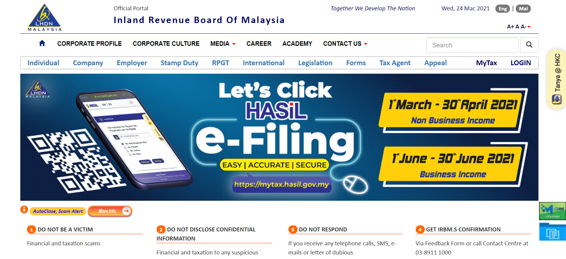On the other hand, if you find after filing that you still owe more taxes, you’ll have to pay them before the due date which is 30 April 2021. Here are a few of the ways you can pay your income taxes in Malaysia: