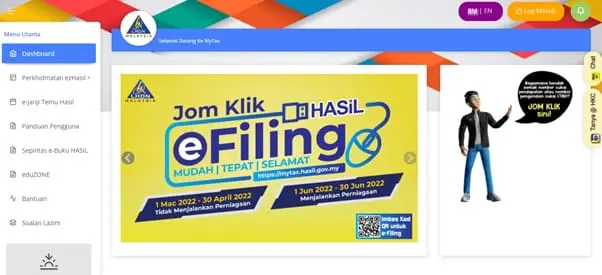 You can access e-Filing through ezHASiL or your tax dashboard, MyTax. Once you’ve logged into e-Filing for the first time and set up your account as per the steps above, you can start filling up your ITRF online. Remember that you can choose to view the e-Filing webpage, your ITRF – and in fact – the entire LHDN website in either English or Bahasa Malaysia; just select the language of your choice at the top of the screen.