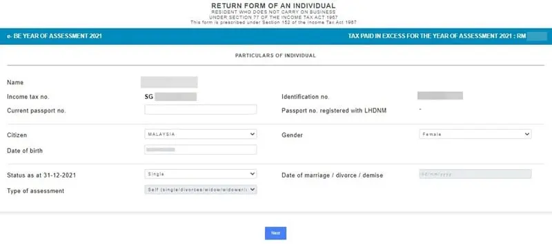 This section requires you to fill in your basic personal details. Some of the items will already have been filled out for you based on the information that you provide when registering as a first-time taxpayer, but always make sure to double check for accuracy. You should also make sure that you select the right type of assessment, which determines whether you will be filing as a single person, or filing together or separately with your spouse.