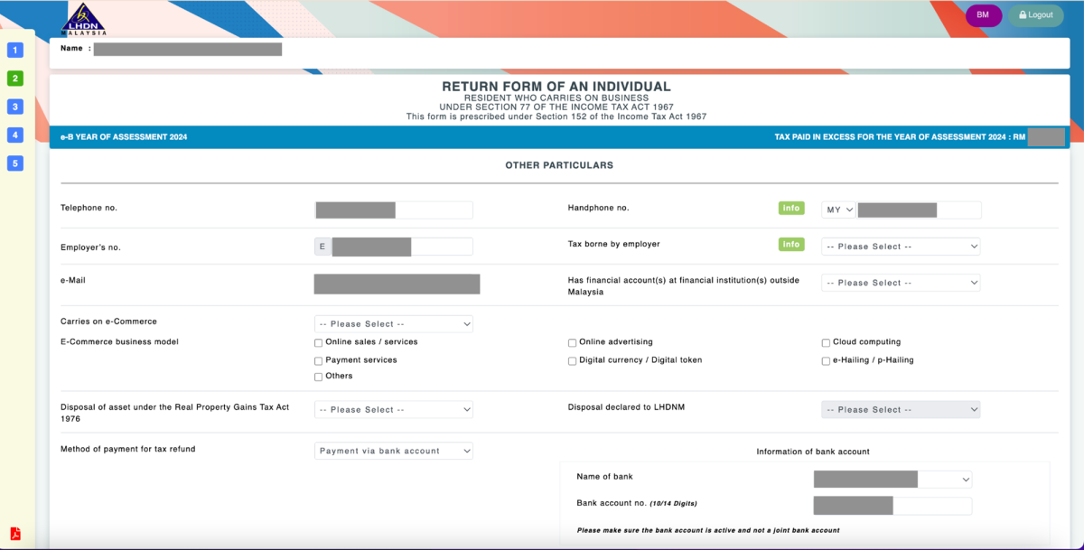 Additionally, double-check that your bank account number is accurate to ensure that any tax refunds you are entitled to are processed smoothly. If you prefer, you also have the option to receive your tax refund via DuitNow. Simply select your preferred method under “Method of payment for tax refund” and enter the necessary details.