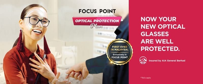 AIA Malaysia has joined hands with optical retailer Focus Point to introduce the Focus Point Optical Protection Plan (OPP), the first of its kind within the country. It offers coverage of up to RM20,000 for new glasses that you purchase from Focus Point for one year, with the option to get an extended warranty for a second year.