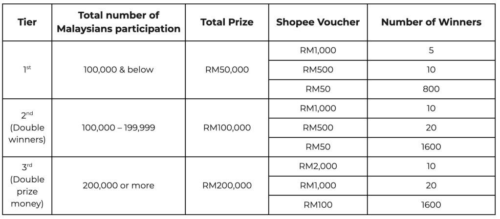 Malaysians from the ages 18 years and above who have received at least one dose of the COVID-19 vaccination before 31 December 2021 can stand a chance to win Shopee e-vouchers worth RM50 to RM2,000 when they register their participation through the Pulse app. Moreover, the higher the participation, the bigger the prize pool and number of winners!