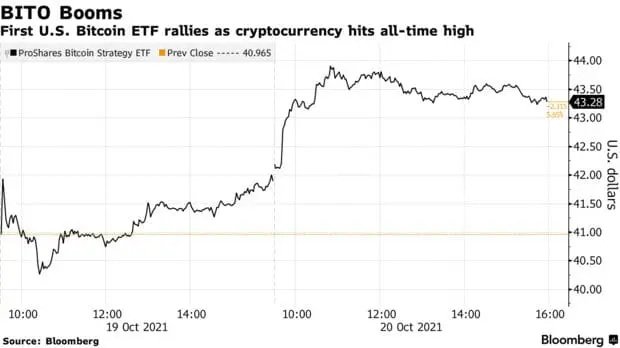 Since its launch, BITO has seen a jump of 4.8% in price, to close at US$41.94. In fact, BITO raked in more than US$1 billion worth of asset under management in just two days, making it the fastest ETF to reach the US$1 billion mark.