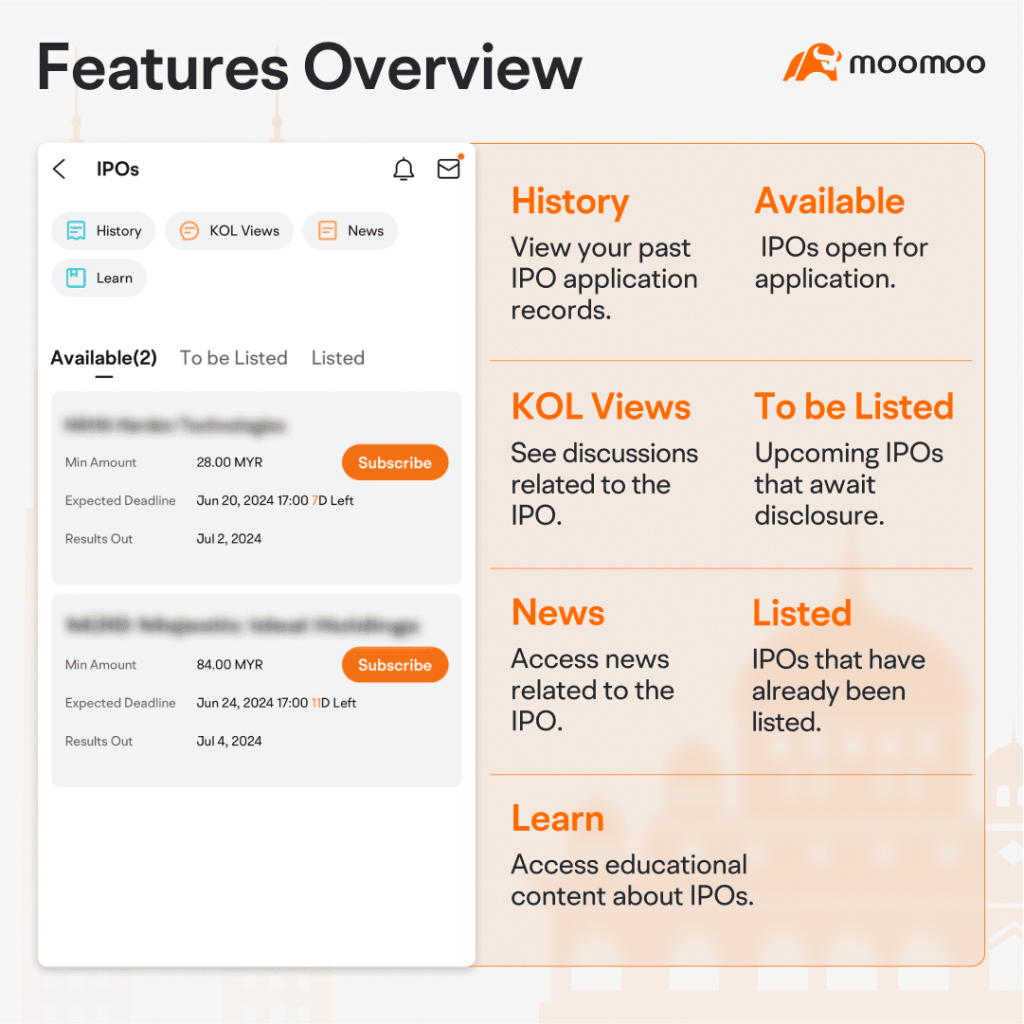 Moomoo Malaysia has launched its IPO subscription service, allowing investors to subscribe to IPOs directly through the Moomoo app, making it the first stock trading platform in Malaysia to offer this feature in a fully-online process.