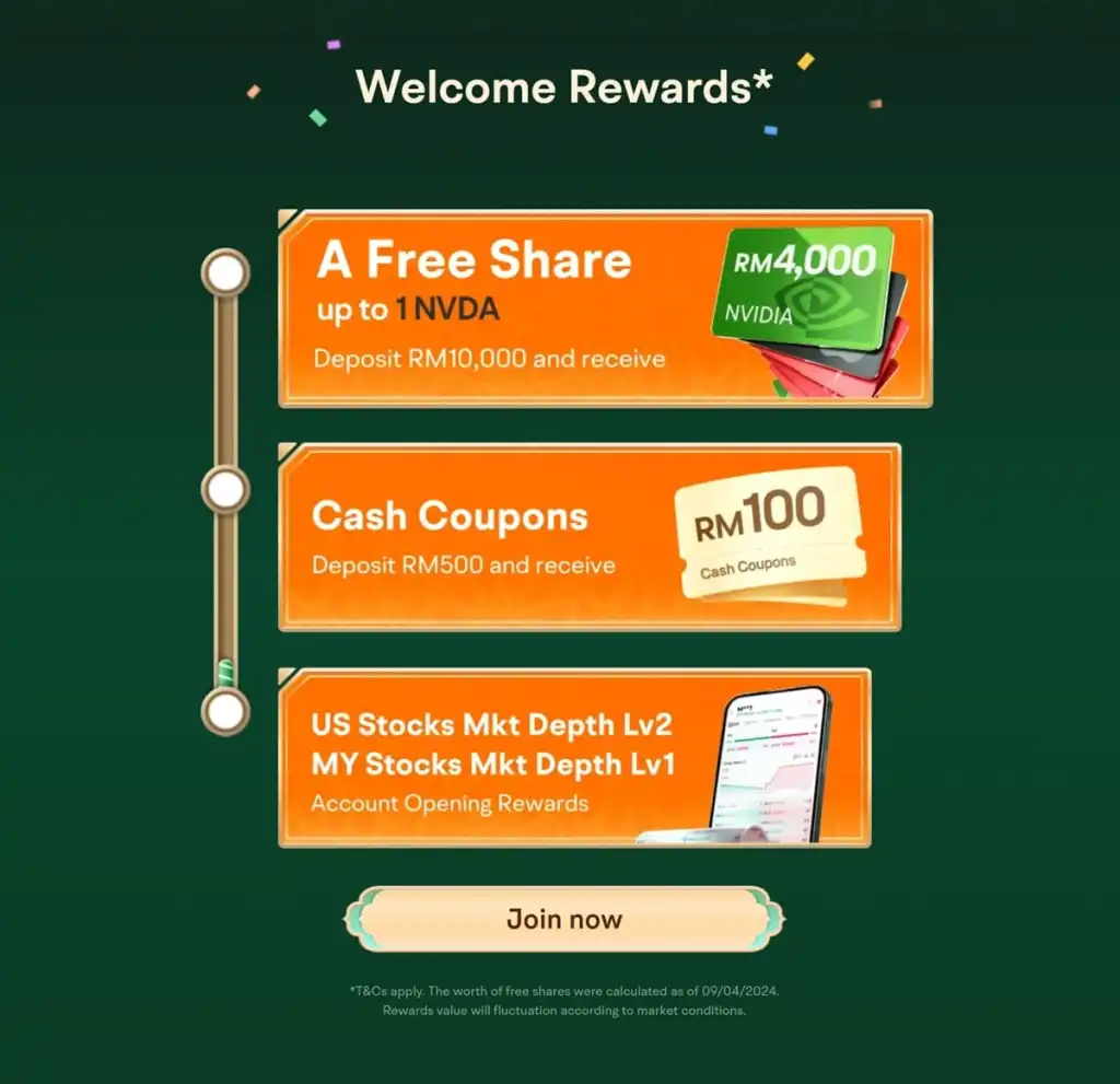 Moomoo Malaysia has updated its welcome rewards for new customers, which now gives you the chance to win a random free share via a lucky wheel spin, including a NVIDIA, Apple, or Tesla share. Running from today until 13 May 2024, other existing new user benefits that you can also continue to enjoy include RM100 cash coupons and free access to Level 2 Malaysia (MY) market data.