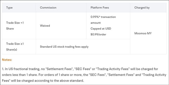 In terms of fees, investors who perform fractional share orders will not need to pay commission fees as it is waived. You will also not need to pay charges such as settlement fees, SEC fees (when selling shares), or trading activity fees. There is, however, a platform fee of 0.99% on the transaction amount, capped at US$0.99 per order, on top of the regular stamp duty fee of RM1.